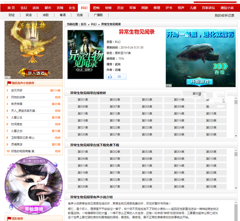 92game仿《好看听书》网站源码 在线有声听书源码 带火车头采集 含7G语音小说数据